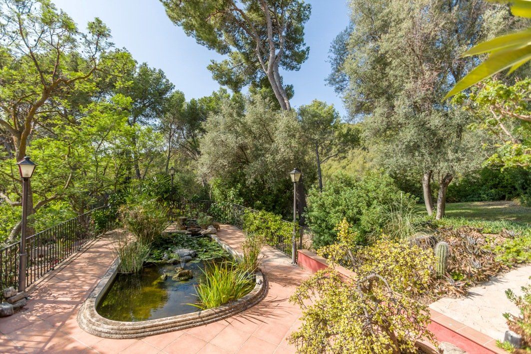 På den 7000 m2 stora gården finns ett trädgårdsområde med två dammar (en engelsk och en arabisk), ett skogsområde, en tennisbana och en pool med en pergola och utemöbler. På gården finns ett täckt utomhusgarage för två bilar, och på strandpromenaden framför huset finns plats för minst 3 bilar till.